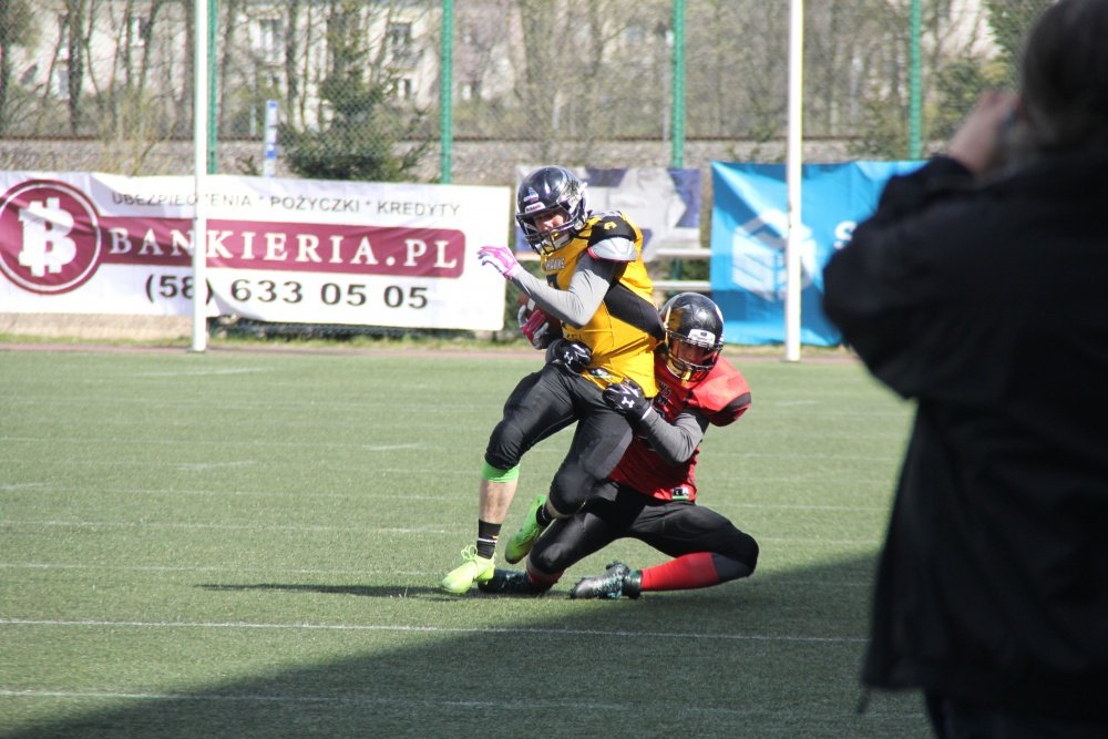 Gdyńscy futboliści pokonali dzisiaj na Narodowym Stadionie Rugby beniaminka TopLigi Outlaws Wrocław 55:0.